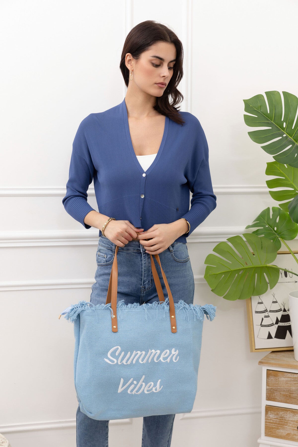 Kevyt ja tilava "Summer Vibes" -okalaukku on kesän ehdoton suosikki! Tämä rento ja tyylikäs kangaslaukku sopii rannalle, kaupungille tai vaikka piknikille. Koristeellinen hapsureunainen yläosa ja käsin tuntuva tekstuuri luovat boheemin ja huolettoman ilmeen.