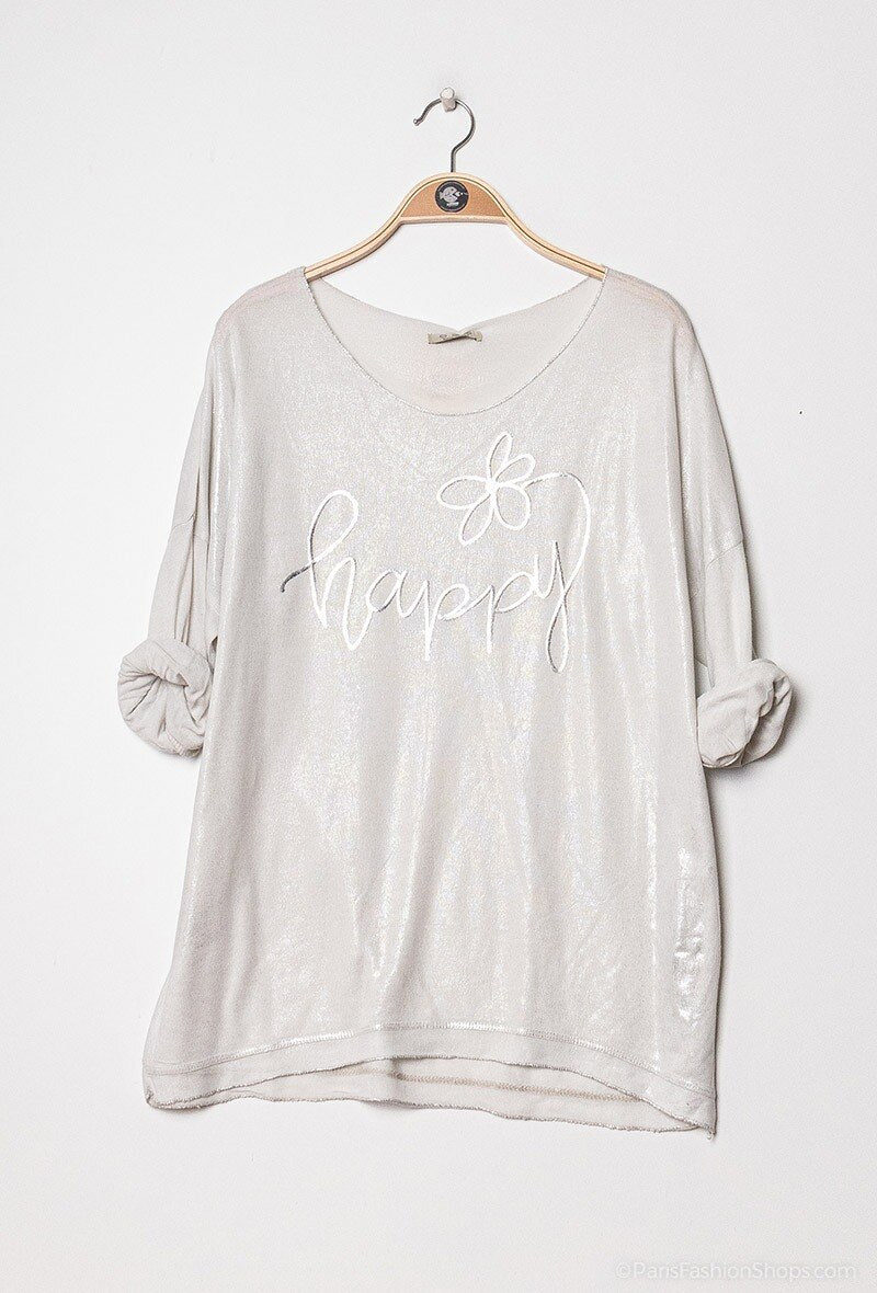 Tuo hillittyä säihkettä arkeen tällä ihanan kevyellä ja näyttävällä puserolla! Puserossa on kaunis hillitysti hohtava pinta ja etupuolella tyylikäs tekstiprintti kukkakoristeella. Rennon väljän istuvuuden ja pehmeän materiaalin ansiosta tämä paita on täydellinen valinta sekä vapaa-aikaan ja vaikka rennompaan juhlaan. Saatavissa neljässä eri sävyssä: Kirkas koralli -energinen väripilkku / Klassinen valkoinen -raikas ja monikäyttöinen, Beige -klassisen hillitty ja Mustanharmaa -ajaton ja helppo yhdistellä.