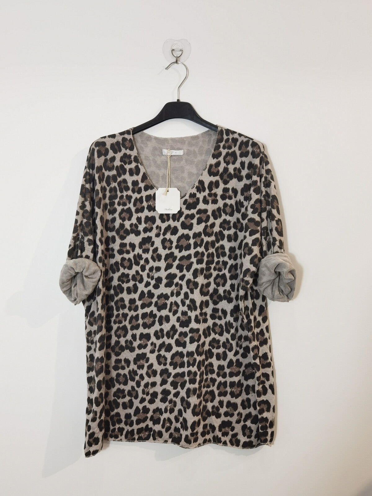 Leopardi kuvioinen pitkähihainen neulospaita.