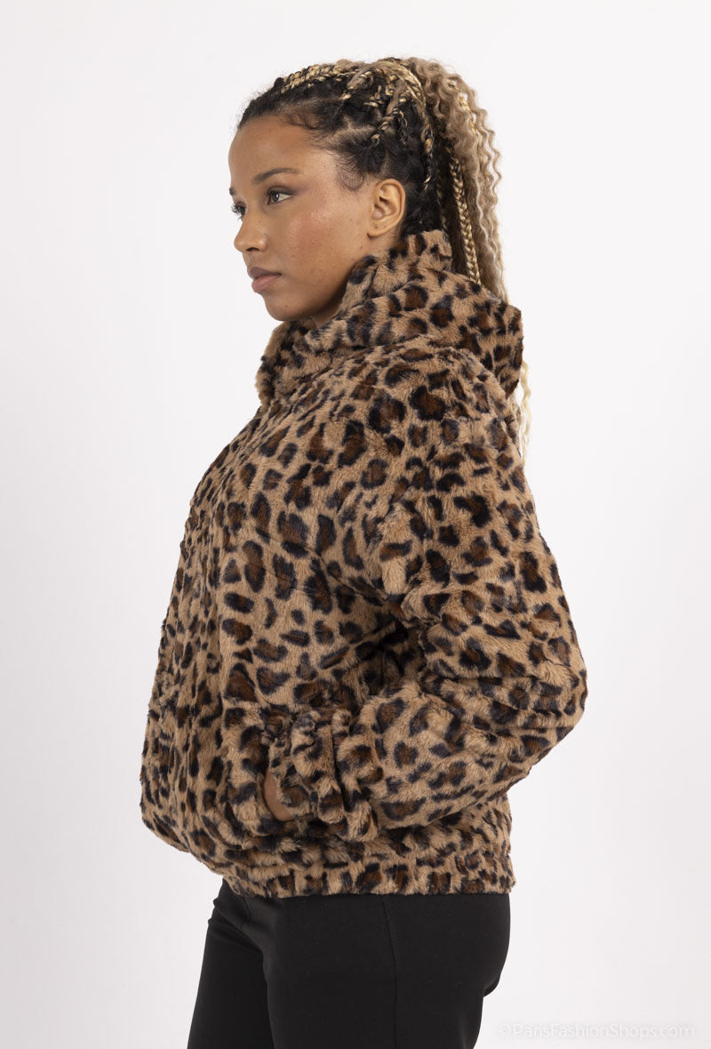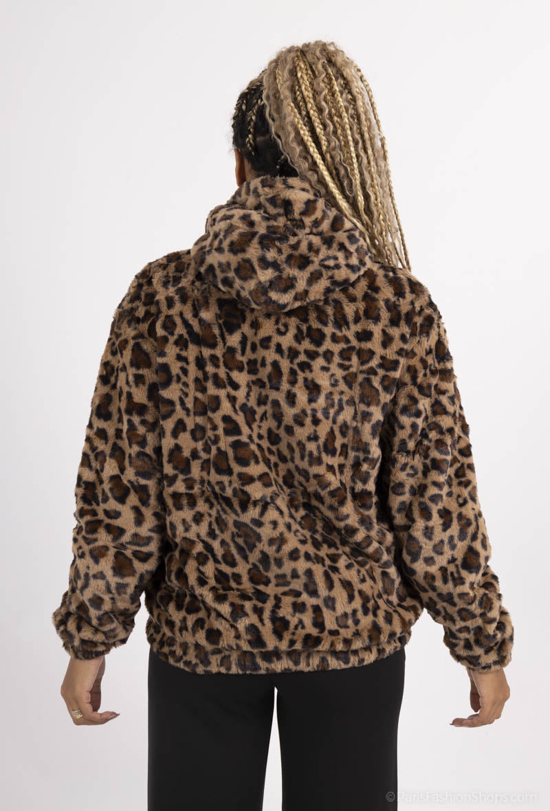 Leopardi kuosinen velour takki hupulla