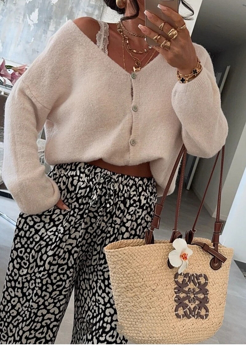Naisten neuletakki italialaisesta neuloksesta, akryylista ja nailonista, täydellinen syksyyn 2025, pehmeä ja elegantti.
