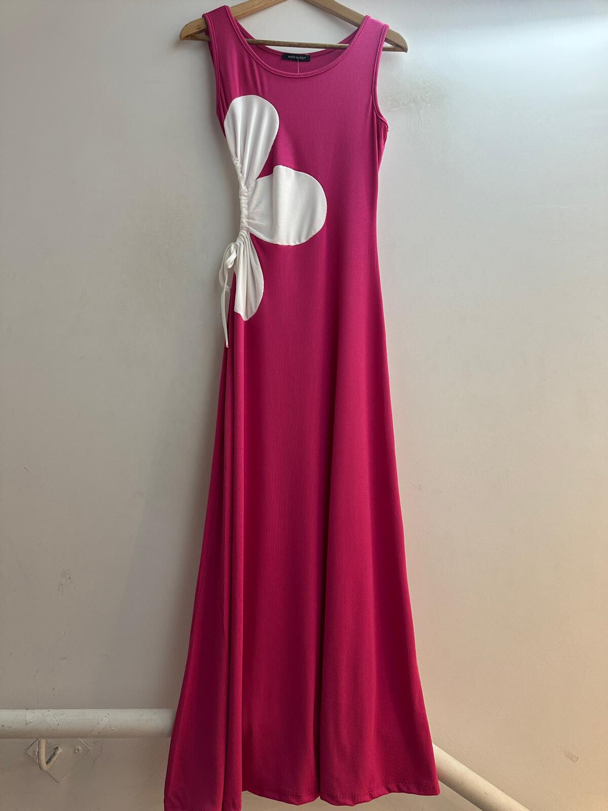 Upea ribbineulos mekko niin arkeen kuin juhlaan. Kukan keskellä vyötäröllä nyörit, joka jättää ihoa näkyviin kuin kukan keskiöksi.