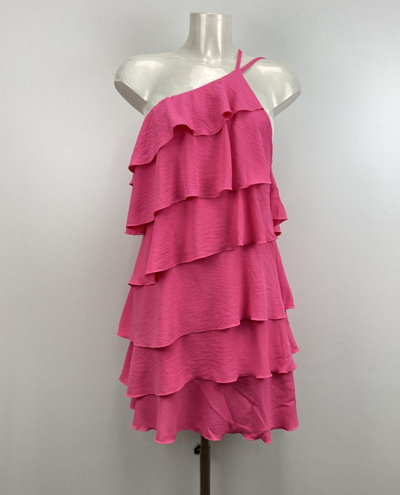 Tyylikäs kauniisti laskeutuva salsamekko toispuoleisella olkaimella. Hieman joustavaa materiaalia.