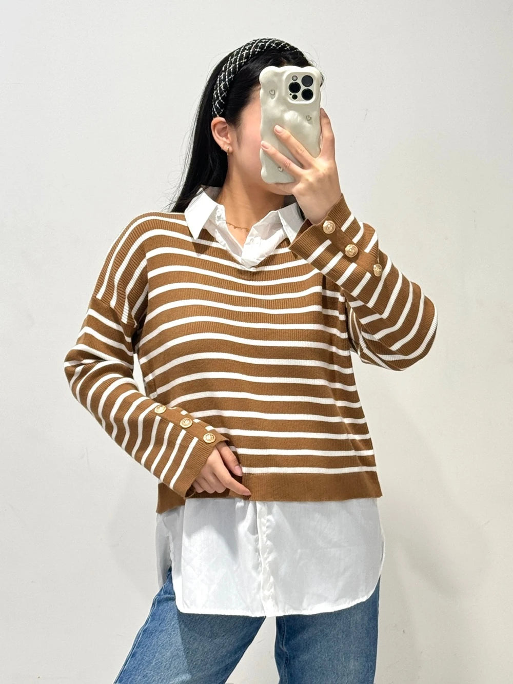 Yhdistetty paitapusero & merimiesneule kultaisilla napeilla (useita värejä)